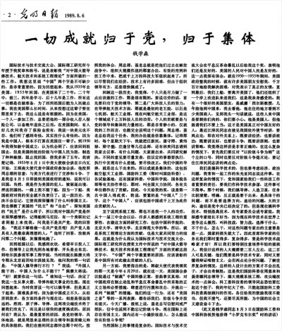 【我与光明日报】 父亲钱学森是光明日报的忠实读者,特别是晚年治学时每日必读。父亲从小就养成读报的习惯,但不是为了消遣时光,而是作为了解时事和掌握信息的途径。 父亲读报时还有一个习惯:做剪报。他每次读报前,总会准备好剪刀、胶水和笔,一旦读到自己认为有价值的报道或文章,就会制作成剪报收藏。正因这个习惯,父亲晚年制作和收藏的剪报就有19000余份,还分类装于630多个资料袋里,同时在资料袋上标明“文化学与文化建设”“汽车工业”“风力发电”“巨型智能系统”“我国稀土事业”“社会主义国家宏观经济理论”等主题。 这些剪报,有很多就来自《光明日报》。例如,1995年3月27日父亲读到苏双碧发表的文章《关于传统文化的几点思考》,就将其制作成剪报并作札记:“社会主义中国要吸取传统中国文化中的精华以创建马克思主义为基础的现代中国文化!是马克思主义的文化!”当时父亲正在思考传统文化与现代文化的结合问题,故而将此文章制作成剪报保存。 父亲与其他学者通过往来书信交换观点和交流心得时,常常将《光明日报》的剪报复印后作为附件寄给通信对象。此举是为了及时将学术信息分享给通信对象,以此为对方提供治学的素材或案例。例如,1995年2月25日,父亲读《光明日报》时,就将刊发于1版、记者宋晓梦撰写的报道《同济新校长吴启迪采访录》,以及刊发于7版由学者李仁真撰写的文章《美英证券管理中的“信息隔离制”及其对我国的启示》,制作成剪报并于翌日寄送通信对象于景元。 除了读者身份之外,父亲还是光明日报的作者,大概发表过近20篇文章。通观父亲发表的文章,可以看出其中寄托着他在不同时期的学术理想。 1956年5月11日《光明日报》发表父亲的第1篇文章——《迅速迈上第二次工业革命的道路》,此文是父亲参加全国先进生产者代表会议的发言摘要。文章内容主要从“生产过程的全部自动化”角度谈如何“建立无人工厂”,并指出实现此种可能需要从发展“远距离控制技术”和“电子计算机”两个方面入手。1956年10月8日《光明日报》又发表了父亲撰写的《从飞机、导弹谈到控制它们的电子计算机》一文,再次指出发展电子计算机的重要性。父亲主要从事空气动力学、火箭技术和工程控制论的研究,但他回国前已经关注到计算机技术的发展将会引起科技、工业等领域的革命性变化,因而回国后他就从不同视角阐释发展电子计算机的重要性。 父亲之所以在《光明日报》发表这样的文章,是希望通过这份知识分子的报纸,与广大读者分享他对世界科技发展趋势的认识,进而传播新知。因而,当20世纪70年代后期至20世纪80年代初期,父亲的学术兴趣转移到哲学社会科学领域,特别是研究系统工程和系统科学时,就在《光明日报》发表了两篇重要文章。 一篇题为《大力发展系统工程,尽早建立系统科学的体系》,发表时间是1979年11月10日;一篇题为《社会系统研究的方法论》,以笔名“席彤”发表于1988年3月24日,“席彤”是“系统”的谐音。两篇文章跨度10年,在某种意义上,也标志着父亲学术旨趣由“工程领域”向“社会领域”的跨越。两篇文章体现父亲运用战略科学家思维观察和审视学术问题的宏观视野,同时在其中还能体会父亲作为一位思想家对如何建设社会主义的学术关怀。特别是以笔名“席彤”发表的文章,提出要用定量方法研究作为复杂巨系统的“社会”。这个观点在当时颇为新颖,引起社会科学领域诸多学者的讨论和争鸣。 除了表达重要学术观点,作为光明日报的作者,父亲还经常在这份报纸上介绍自己的科研心得或治学体会。例如,父亲于1961年6月10日发表的文章《科学技术工作的基本训练》,正是他自己从事科研工作的经验总结。再如,父亲于1989年8月6日发表的《一切成就归于党,归于集体》,就指出自己取得科技成就主要“依靠集体”。 值得一提的是,父亲读报时非常仔细和认真。1963年9月2日阅读《光明日报》刊登中国科学院原子能研究所研究员丁渝撰写的文章《波谱学的新近发展》时,就发现文中使用的单位“分米”存在翻译不确切的问题而致函光明日报社提出商榷意见。有时,父亲看到对熟人的报道,还会引起他对往事的回忆。1990年7月23日读到《光明日报》1版报道大庆石油管理局总工程师王德民“艰苦奋斗三十载 取得成果四十项”的事迹时,“深受教育,也为之感动”,7月25日特地致函王德民表示“致敬”。 作为读者和作者,父亲与光明日报结下不解情缘。这份报纸既为父亲提供了源源不断的学术信息,同时也成为父亲寄托学术理想的精神故乡。尚不止于此,从父亲归国到父亲逝世之间的重要事件或关键时间节点,光明日报都会进行报道。一份报纸与一位知识分子结下70多年的情缘,可以说是“君子之交”的写照。 (作者:钱永刚,系钱学森之子、上海交通大学钱学森图书馆馆长 本报记者詹媛采访整理) |